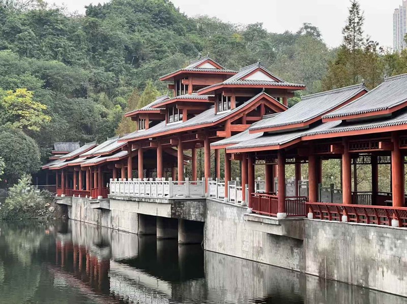 炎炎夏日,到重慶彩云湖國家濕地公園散步休閑、消暑納涼成為了不少主城區(qū)市民的首選。近日,公園中由重慶設(shè)計集團(tuán)所屬子企業(yè)重慶市建筑科學(xué)研究院有限公司(以下簡稱“市建科院”)原址重新設(shè)計修建的新風(fēng)雨廊橋向市民開放,因其優(yōu)美的外觀造型、精心設(shè)計的結(jié)構(gòu),再次成為公園一道亮麗的風(fēng)景線。